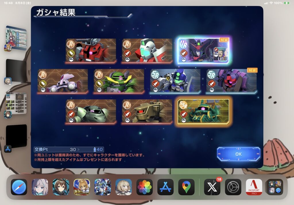 マスター引けました🥰 Gジェネエターナル X Facebook はてブ LINE Pinterest コピー 2025.08.08 マスター引けました。やったね!!絶対欲しいユニットだったからさぁ…全アニメでGガン1番好きな俺には好きにとってはやっぱ外せないユニットっしょ!!